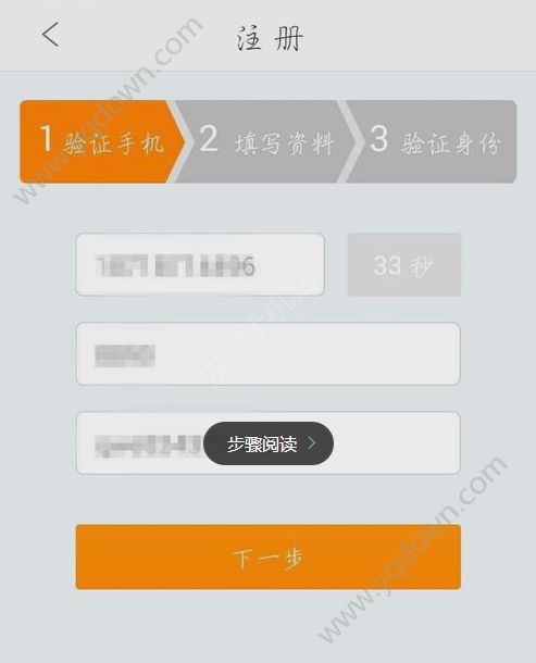 3、填写好手机号等信息,点击下一步;