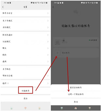 首先,在手机微信中点击【设置】,然后点击设置页面下方的【切换账号】,在切换账号页面中点击【添加账号】。