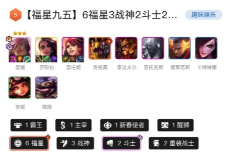 1、作为福星爱好者必走的一套阵容,几乎没有什么玩家能够抵挡天选福星的诱惑。