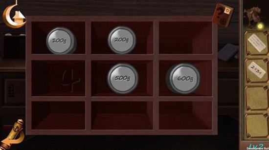 点击桌子,根据金币得到提示,点击最后的床,这里也有金币提示,整合后得到密码;