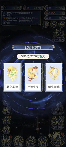 前期:单人族,选项选诞生血脉和启示生灵,然后通过时间大法(就是更改手机时间)一直刷新空间跃进次数,找人族秘境获得奇物