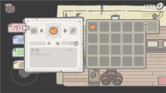 生活向的冒险游戏,非常可爱的手绘画风,游戏本身的乐趣很多,钓鱼或者是摘水果,在最开始的时候大家记得去摘右边树上的橘子,然后跟着一个老人进入商店,再和他对话,把橘子放到三个台子的其中一个,然后摇动房间右下角的铃铛,就会开门营业了,这时候就等有人走到你的橘子旁边,看他头上有橘子标记的时候,就把橘子卖给他,这时候基本新手教程就告一段落了。